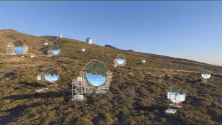 Recreación de la red de telescopios Cherenkov que se van a ubicar en la isla de La Palma - MINISTERIO DE CIENCIA, INNOVACIÓN Y UNIVERSIDADES