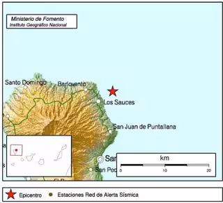 La isla de La Palma ha registrado este lunes un seísmo de magnitud 3.5 en la Escala de Richter e intensidad I-II, concretamente al noreste del municipio de San Andrés y Sauces, según los datos del Instituto Geográfico Nacional (IGN).