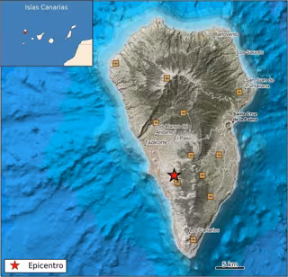 Según datos del Instituto Geográfico Nacional (IGN), este temblor se ha registrado a las 12.29 horas (hora canaria) y tuvo su epicentro a 7 kilómetros de profundidad, al sur del municipio de El Paso, en la zona suroeste de la isla.