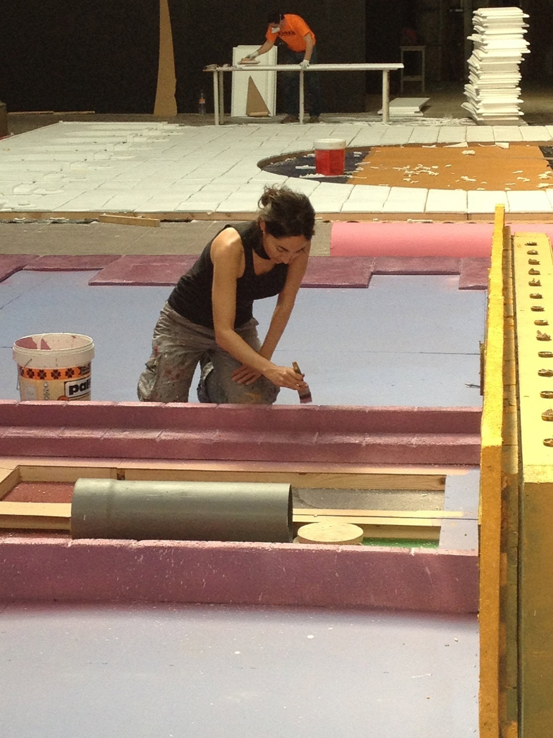 Por su parte, la calle, que se divisará tras la puerta de acceso al escenario, será la primera parte que se instalará de la escenografía, aunque ésta no comenzará a ser perceptible hasta pasados tres días de trabajo.