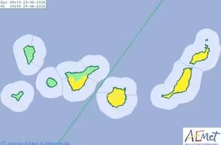 Según la Agencia Estatal de Meteorología (AEMET), en Canarias, este aviso afectará principalmente a medianías del sur de Gran Canaria y al interior y costas sur de Lanzarote y Fuerteventura, mientras que el mismo permanecerá activo desde las 12.00 hasta las 20.00 horas de este jueves.