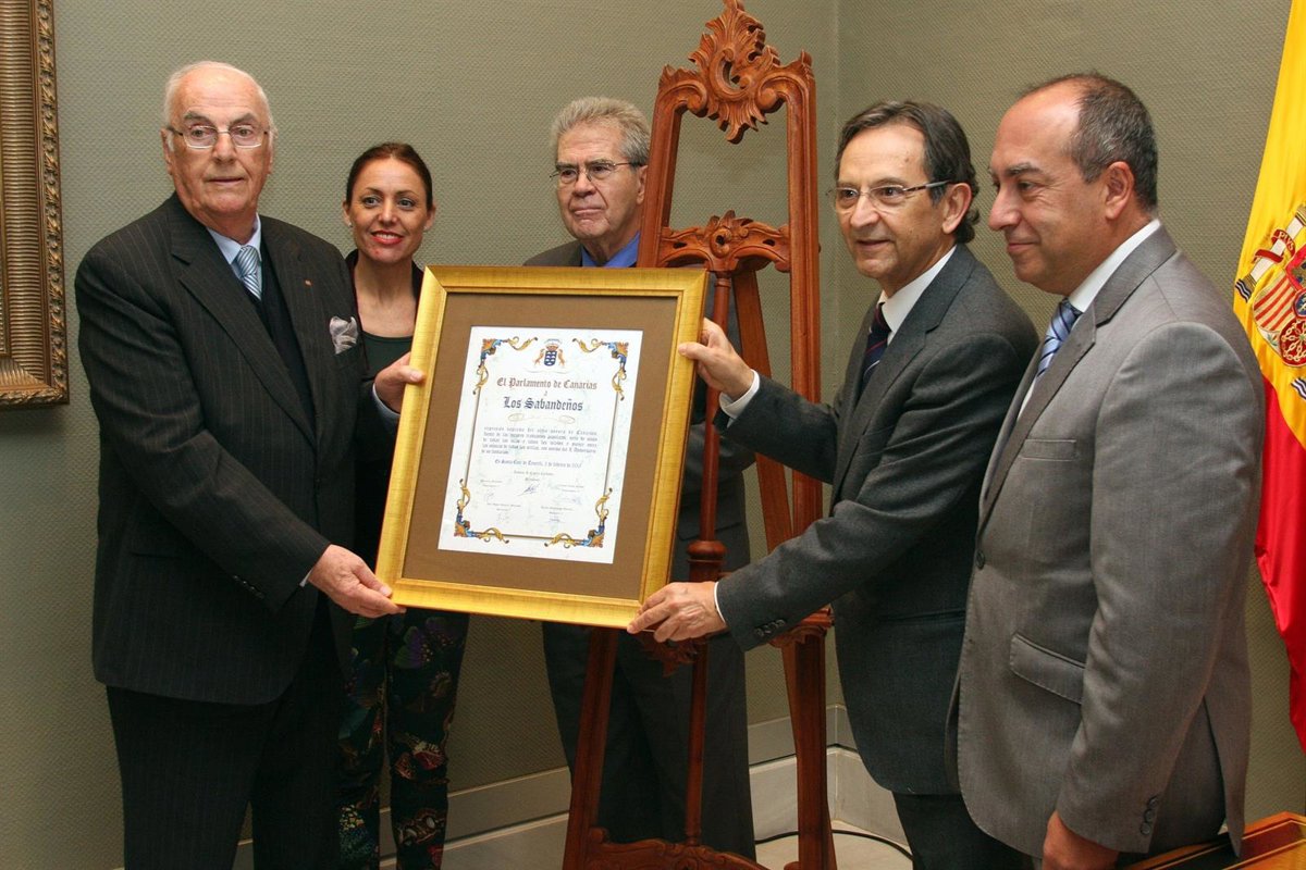 El Parlamento de Canarias ha entregado este jueves una placa conmemorativa al grupo musical Los Sabandeños en reconocimiento a sus cincuenta años de trayectoria.