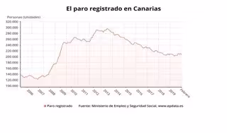 El número de parados registrados en las oficinas de los servicios públicos de empleo (antiguo Inem) en Canarias ha descendido en 3.327 personas en febrero, lo que supuso una caída del 1,58 por ciento con respecto a enero de este año, de tal forma que se sitúa en 207.837 desempleados.