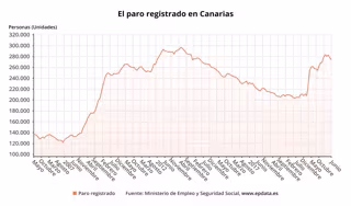 Además, de las 274.475 personas sin trabajo del conjunto de Canarias, 122.906 son hombres y 151.569 mujeres, mientras que 21.245 tienen menos de 25 años de edad.