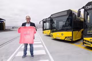 El concejal de Movilidad de Las Palmas de Gran Canarias, José Eduardo Ramírez, sujetando la camiseta de la Carrera de la Mujer - GUAGUAS MUNICIPALES