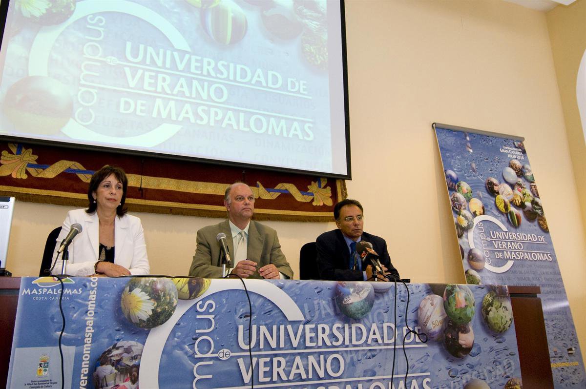 Esta edición cuenta con 10 cursos y 13 talleres que versarán sobre disciplinas diversas y ha sido presentada hoy en la capital grancanaria por el vicerrector de Investigación, Desarrollo e Innovación de la ULPGC, Fernando Real Valcárcel, la alcaldesa de San Bartolomé de Tirajana, María del Pino Torres, y el director de la Universidad de Verano de Maspalomas, Santiago Hernández León, informó la ULPGC en un comunicado.