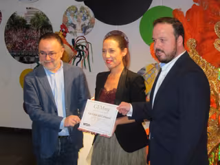 La alcaldesa de Santa Cruz de Tenerife, Patricia Hernández, ha recibido este martes, de la mano del consejero insular de Turismo, José Gregorio Martín, el 'Premio Gemmy' a la Casa del Carnaval que otorga la asociación de periodistas estadounidenses MJTA.
