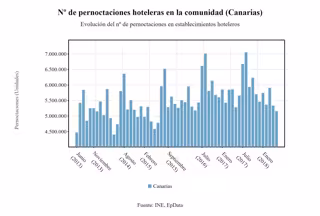 Los hoteles de Canarias registraron 5,16 millones de pernoctaciones el pasado mayo, un 1,7% menos que en el mismo mes de 2017 --cuando hubo 5,25 millones--, según los datos sobre coyuntura turística hotelera difundidos este viernes por el Instituto Nacional de Estadística (INE).