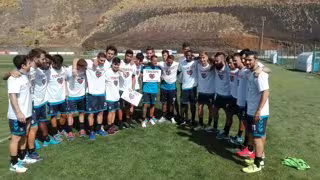 Tras la sesión de entrenamiento de este jueves, los jugadores no han dudado en apoyar la iniciativa, para lo que se han enfundado la camiseta del #bigwarmhug --etiqueta de la campaña en redes sociales-- para formar una gran piña con la que quisieron escenificar que Tenerife seguirá recibiendo a los británicos con los brazos abiertos.