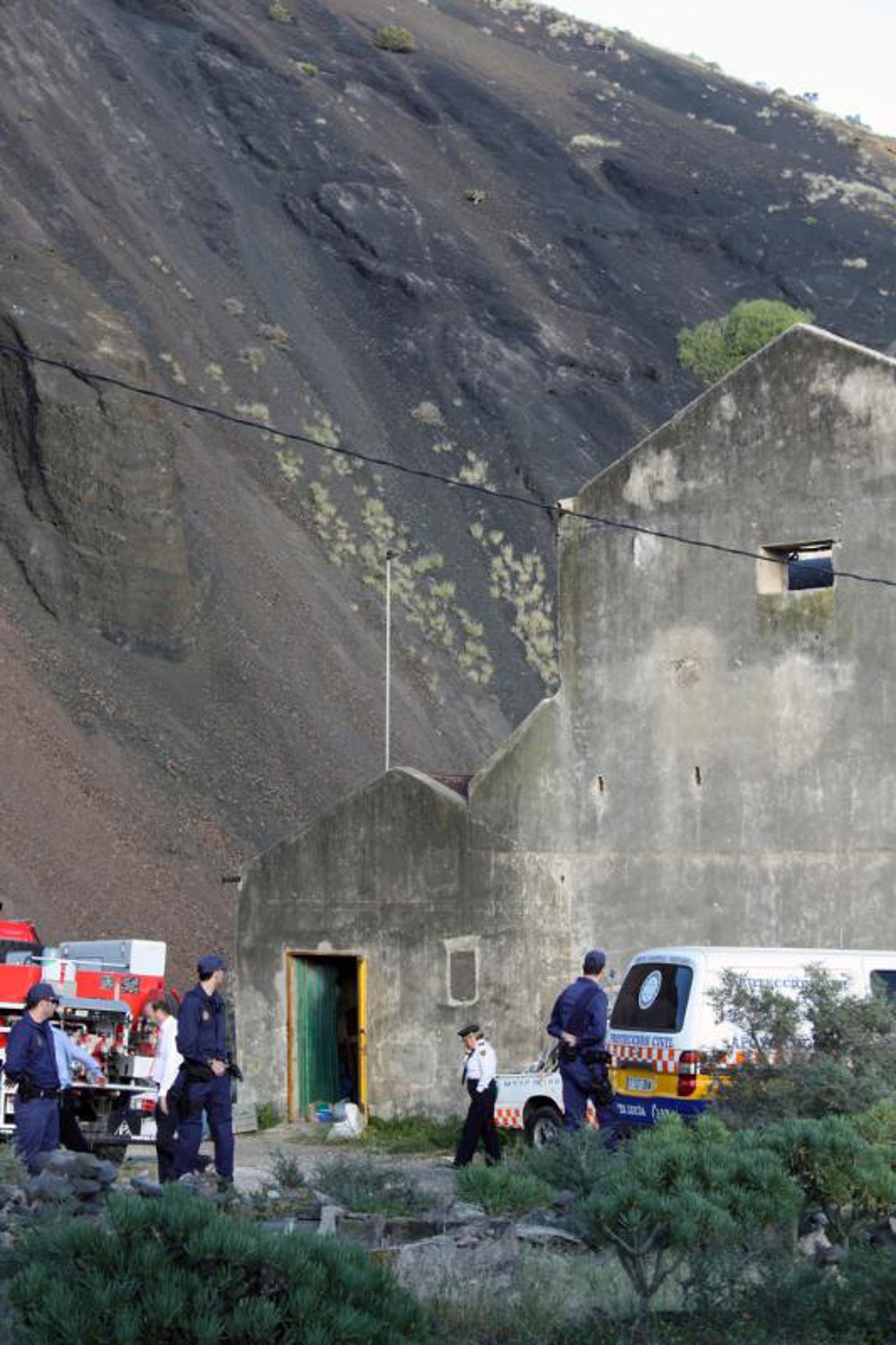 Agentes de la Policía Nacional están custodiando y acondicionando un pozo ubicado en un viejo caserón abandonado junto a la carretera GC-100 de Jinámar antes de reanudar la búsqueda de restos óseos en el lugar durante la búsqueda de pistas sobre el paradero de Sara Morales, desaparecida el 30 de julio de 2006 en Las Palmas de Gran Canaria.