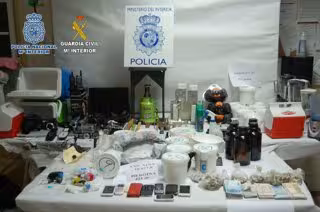Así, tras estas detenciones, se procedió a las entrada y registro de los domicilios y a la desarticulación del núcleo de la organización. También se desmanteló el laboratorio de cocaína que tenían en uno de los domicilios en la calle Poril, donde fueron intervenidos una prensa hidráulica, planchas, trituradoras, unos 9.500 gramos de cocaína, seis kilos de sustancias para adulterarla, cinco botes de acetona, gran cantidad de sustancia secante, 80 gramos de hachis, máscaras antigas y diferentes útiles para su elaboración.