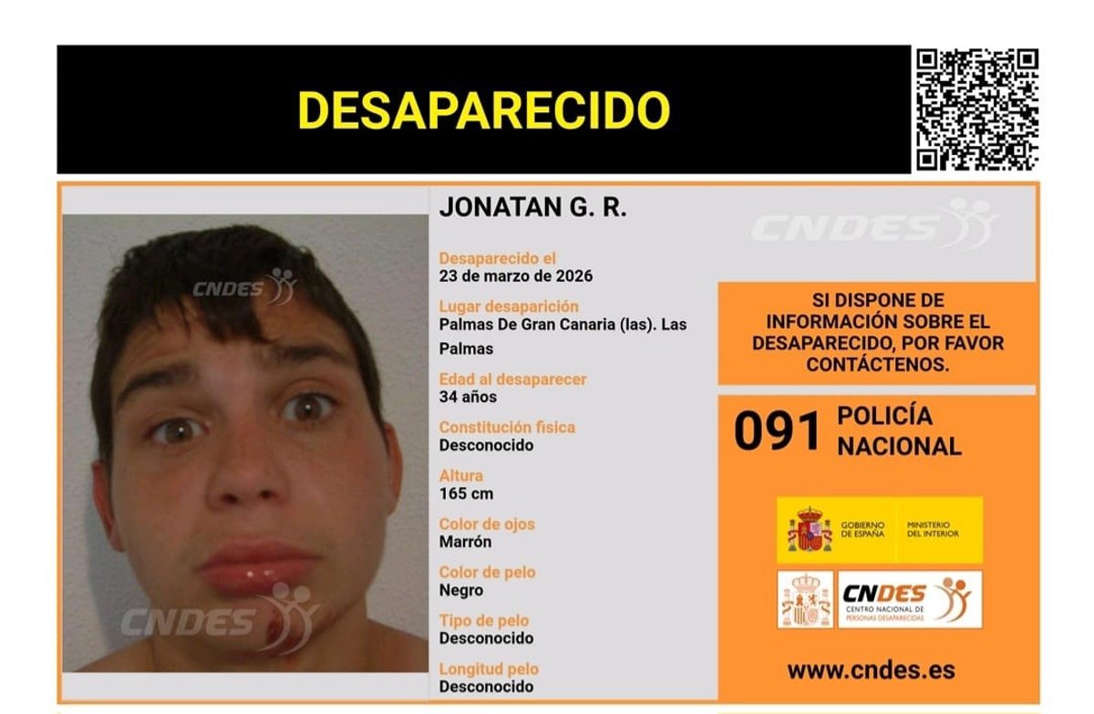 Según informa la Jefatura Superior de Policía de Canarias, se trata de Jonatan G.R., de 34 años, que mide 1,65 metros, tiene los ojos marrones y el pelo de color negro.