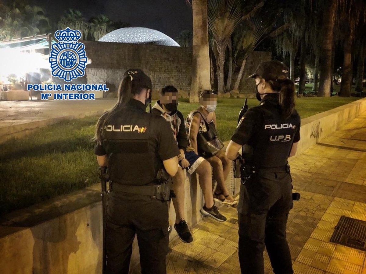 Agentes de la Policía Nacional realizan un control a dos jóvenes con el fin de garantizar las normas frente a la covid-19 - POLICÍA NACIONAL