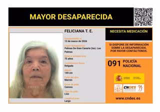 En concreto, se trata de Feliciana T.E., de 75 años, que mide 1,90 metros, tiene los ojos de color marrón y pelo el largo canoso, de la que no se tiene noticias desde el 13 de marzo.