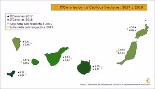 Los portales de transparencia de los cabildos han aprobado con una nota media que supera el notable, según el Índice ITCanarias de 2018, siendo la primera vez en los cuatro años en los que se les ha evaluado que las siete corporaciones insulares superan la nota de cinco sobre diez.