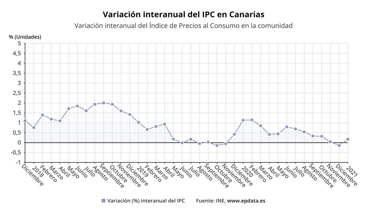 El Índice de Precios de Consumo (IPC) en Canarias ha descendido un 0,3 por ciento en enero, si bien en la tasa interanual experimentó una subida del 0,2 por ciento, según los datos publicados este viernes por el Instituto Nacional de Estadística (INE).