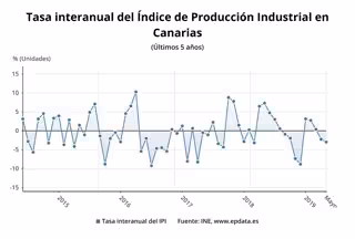 El Índice General de Producción Industrial (IPI) ha descendido en Canarias un 3 por ciento en mayo con respecto al mismo mes de 2018, según ha informado este viernes el Instituto Nacional de Estadística (INE).