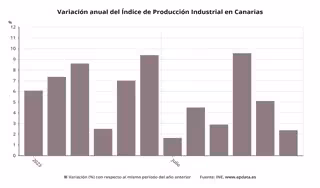 El Índice General de Producción Industrial (IPI) ha aumentado en Canarias un 2,4 por ciento interanual el pasado mes de diciembre, 6,4 puntos más que la media nacional, que ha caído un 4 por ciento, según datos publicados por el Instituto Nacional de Estadística (INE).