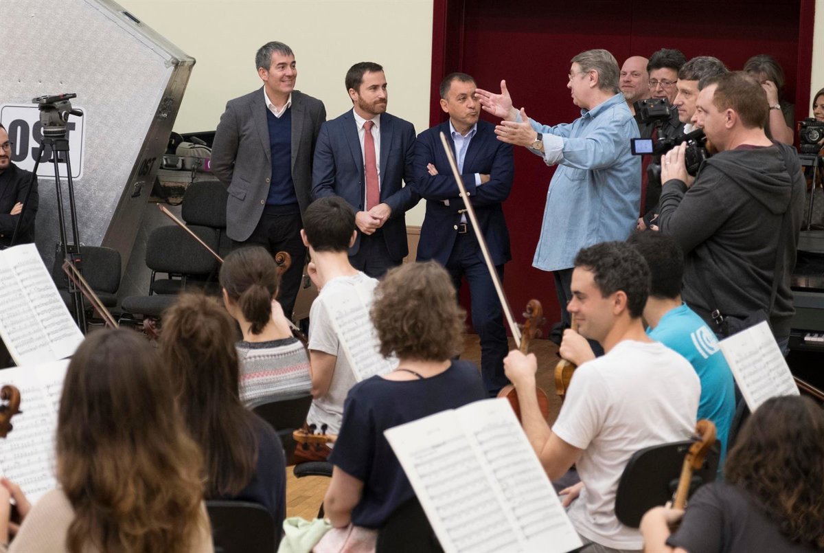 El presidente del Gobierno de Canarias, Fernando Clavijo, ha asistido hoy viernes al primer ensayo del concierto de Año Nuevo que ofrecerá la Joven Orquesta de Canarias (JOCAN) del 1 al 4 de enero en Tenerife, Gran Canaria, Fuerteventura y Lanzarote, bajo la dirección de Víctor Pablo Pérez.