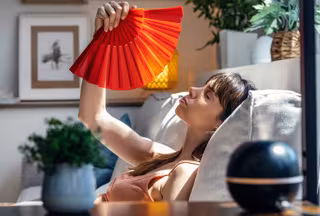 Archivo - MUjer abanicándose sentada en un sillón por el calor del verano. - NENSURIA/ISTOCK - Archivo