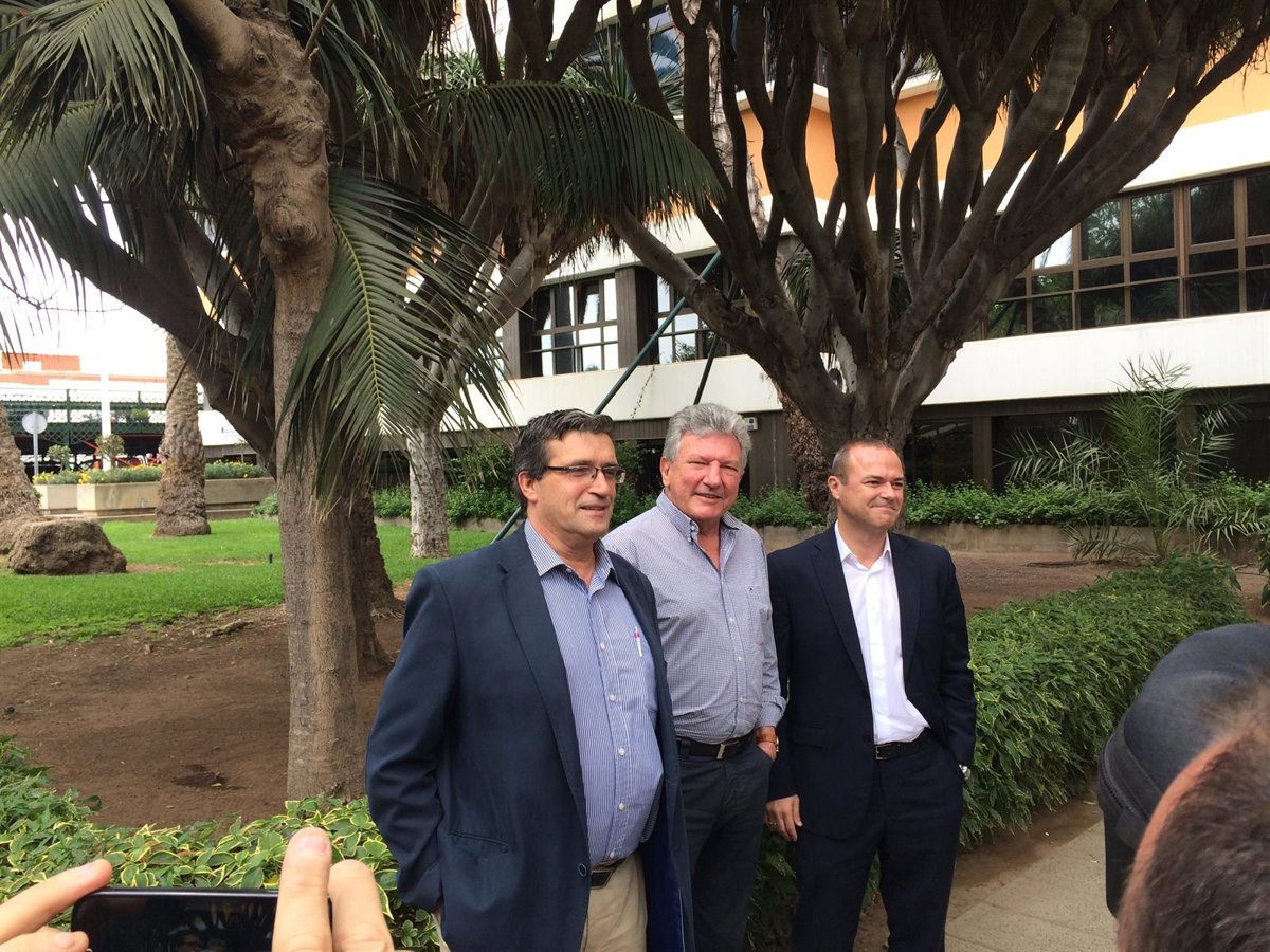 Los concejales electos del PSOE, Augusto Hidalgo, así como de Las Palmas de Gran Canaria Puede (LPGC Puede), Javier Doreste, y de Nueva Canarias (NC), Pedro Quevedo, han iniciado este lunes las negociaciones para poder formar gobierno en Las Palmas de Gran Canaria.