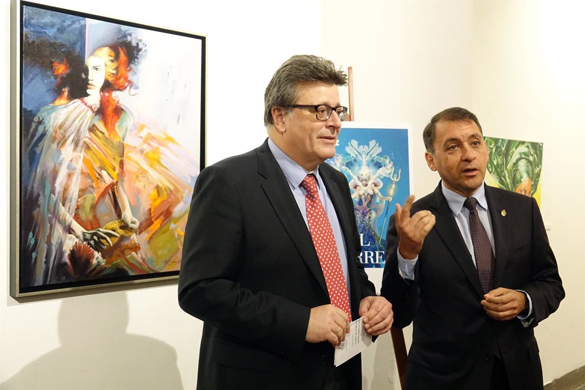 El alcalde de Santa Cruz de Tenerife, José Manuel Bermúdez, y el concejal de Cultura, José Carlos Acha, inauguraron este martes una exposición colectiva de pintura que lleva por título 'El Carnaval chicharrero', instalada en la Sala L del Centro de Arte La Recova.