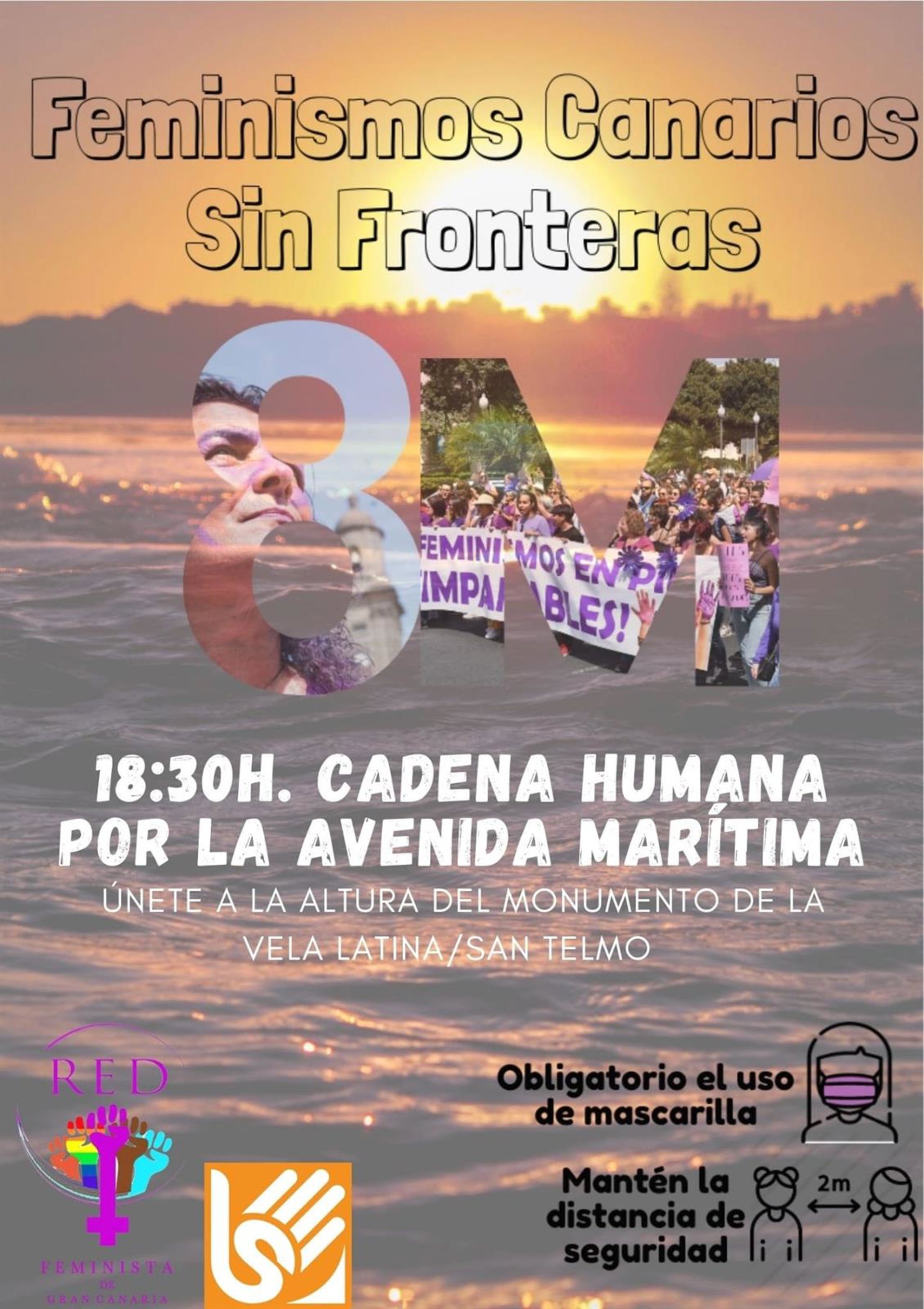 La Red Feminista de Gran Canaria celebrará el próximo 8 de marzo, Día Internacional de la Mujer, con varios actos, entre ellos, una cadena humana por la igualdad en la Avenida Marítima --en el monumento a la Vela Latina-- de Las Palmas de Gran Canaria a partir de las 18.30 horas.