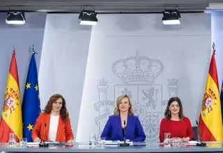 (I-D) La ministra de Sanidad, Mónica García; la ministra de Educación, Formación Profesional y Deporte, Pilar Alegría y la ministra de Infancia y Juventud, Sira Rego, durante una rueda de prensa posterior a la reunión del Consejo de Ministros, en el Pal - Eduardo Parra - Europa Press