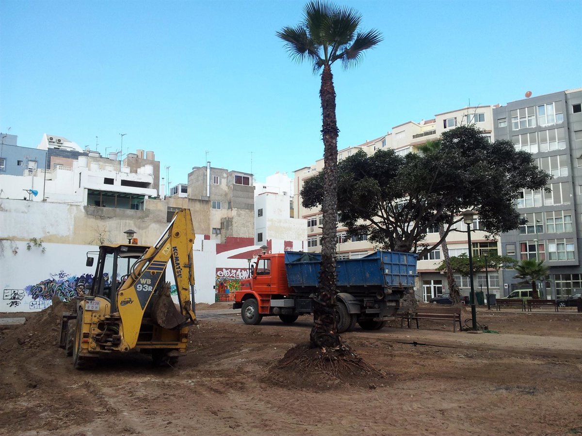 Los trabajos, que se iniciaron el pasado lunes 16 de julio, se han centrado hasta el momento en la limpieza y saneamiento de todo el recinto, procediéndose en estos momentos a la sustitución de la tierra para albergar las nuevas plantaciones.