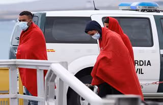 Archivo - Varios migrantes a su llegada al Puerto del Rosario tras haber sido rescatados de una patera, a 28 de mayo de 2021, en Fuerteventura, Canarias, (España). La embarcación, en la que iban a bordo al menos 36 personas de origen magrebí, se encontr - Europa Press - Archivo