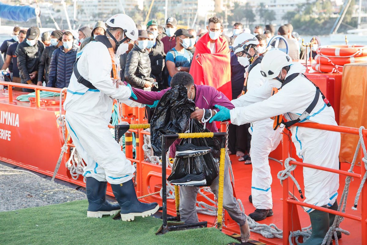 Con todos los rescatados a bordo, la salvamar 'Menkalinan' puso rumbo hacia el puerto de Arguineguín, en el municipio de Mogán, donde se procedió al desembarco de las 108 personas sobre las 13.40 horas.