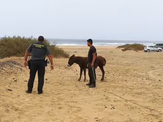 La Patrulla del Servicio de Protección de la Naturaleza (SEPRONA) de Puerto del Rosario, en coordinación con la asociación The Animal Academy, ha rescatado el pasado 8 de julio a seis burros majoreros que se encontraban sueltos y asilvestrados en la zona de Punta Jandía-Pájara, los cuales no presentaban las medidas mínimas para el bienestar animal.
