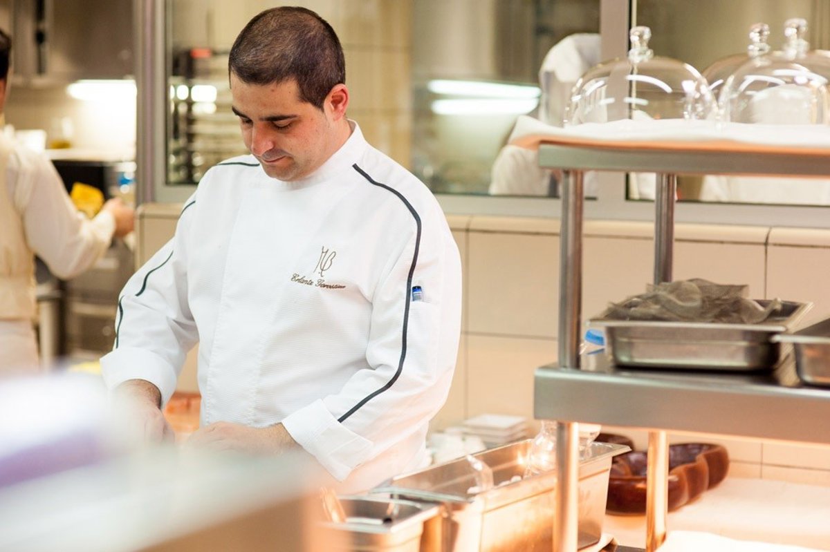 Propuestas como la 'Ensalada tibia de tuétano de verdura con marisco, crema lechuga de caserío y jugo yodado', el 'Tartar de atún acompañado de fideos de salsa ponzu y cerezas', la 'Yema de huevo de corral bañada con una ensalada líquida de hierbas, toques de remolacha, queso canario y trufa', el 'Lomo de merluza a la brasa envuelto en láminas de tocino ibérico y jugo espumoso de miso blanco con berberechos recién abiertos al vapor', el 'Solomillo de vaca gallega acompañada de un lecho de clorofila de acelgas y hongo, ñoquis esféricos de trufa y un aire de queso' o el icónico postre del chef vasco 'Tarta fina de hojaldre y manzana acompañada de chantilly de canela y helado de la propia manzana'.