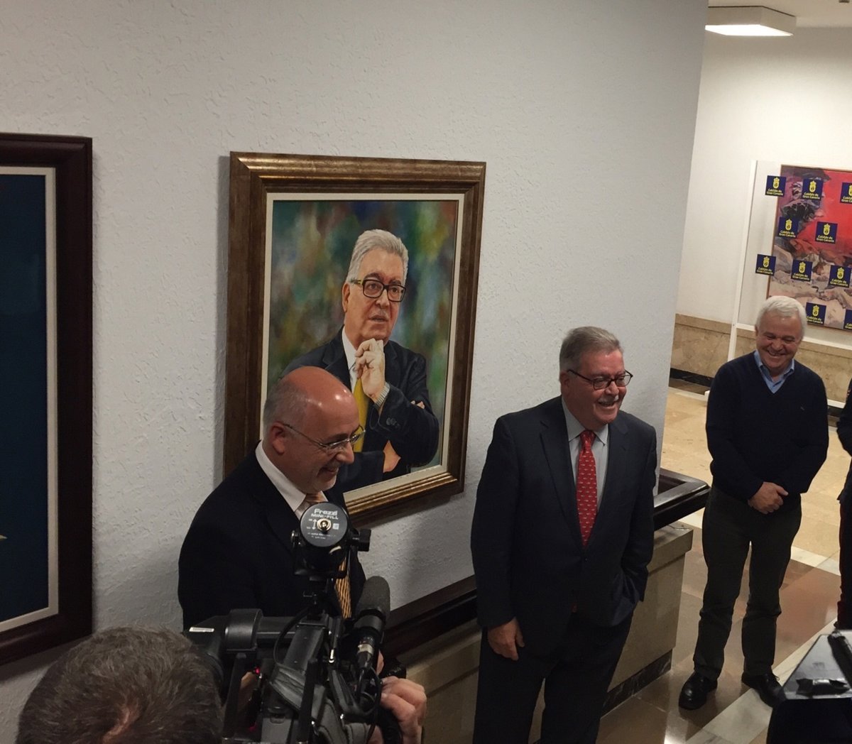 "Es la primera vez que 'cuelgan' a un presidente y sigue viniendo a los plenos", bromeó antes del acto oficial, que contó con la participación del presidente actual, Antonio Morales.