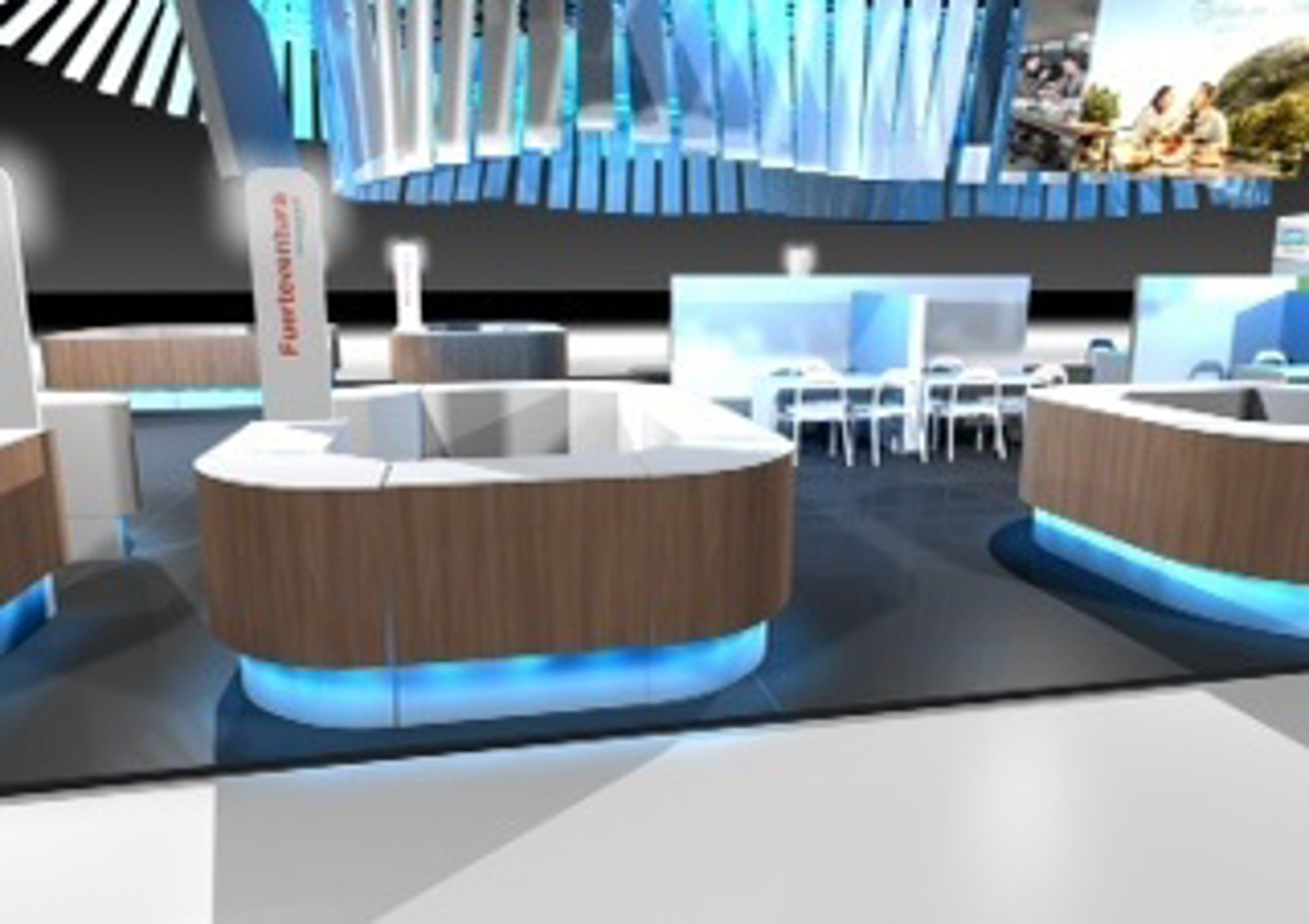 El stand presenta una cubierta de madera y luz, así como un techo realizado mediante lamas de madera natural. Además, el espacio del destino turístico Islas Canarias contará con 48 cañones led proyectados para dar un movimiento ondulante simulador de ondas marinas de tonos cambiantes. El pavimento con cromática lava en alusión al paisaje de las islas es otro de las características del mismo.