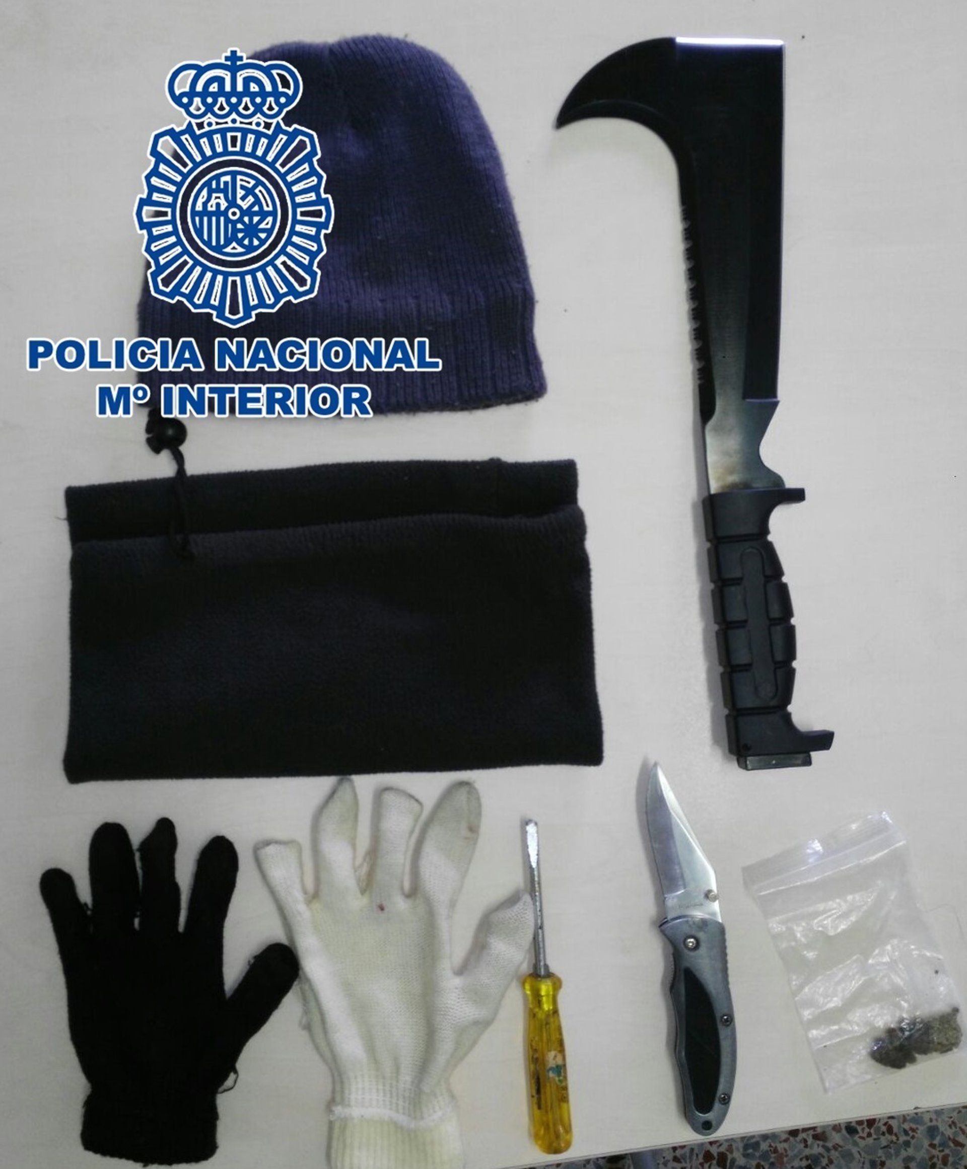 Al autor de los hechos se le encontró en una mochila varias armas blancas, así como otros efectos como guantes, un destornillados y ropa que utilizó para cubrirse la cara.