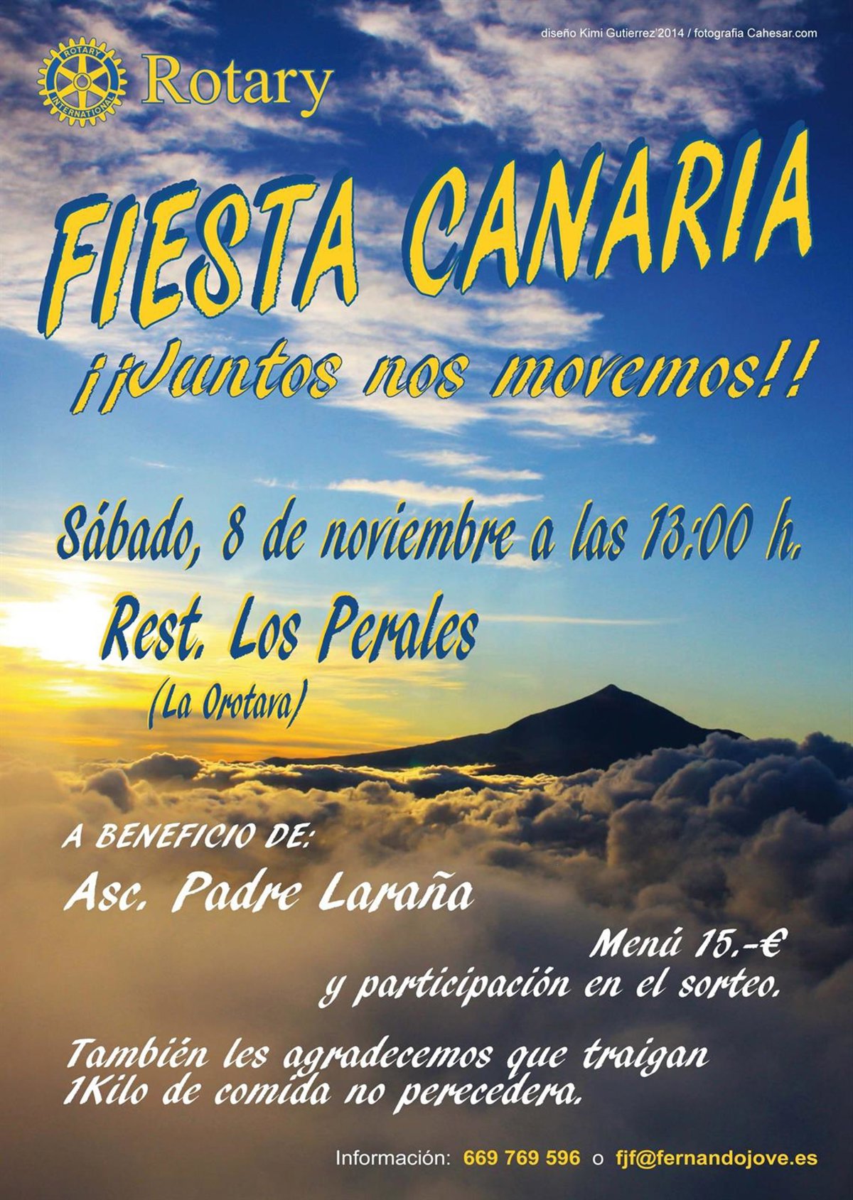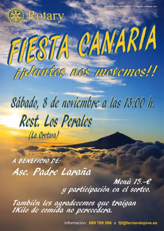 Rotary Club de Santa Cruz de Tenerife ha organizado por quinto año consecutivo la acción 'Juntos nos movemos', un almuerzo solidario que tendrá lugar el próximo sábado a las 13.00 horas en el restaurante Los Perales de La Orotava y cuya recaudación se destinará a la Asociación Padre Laraña.