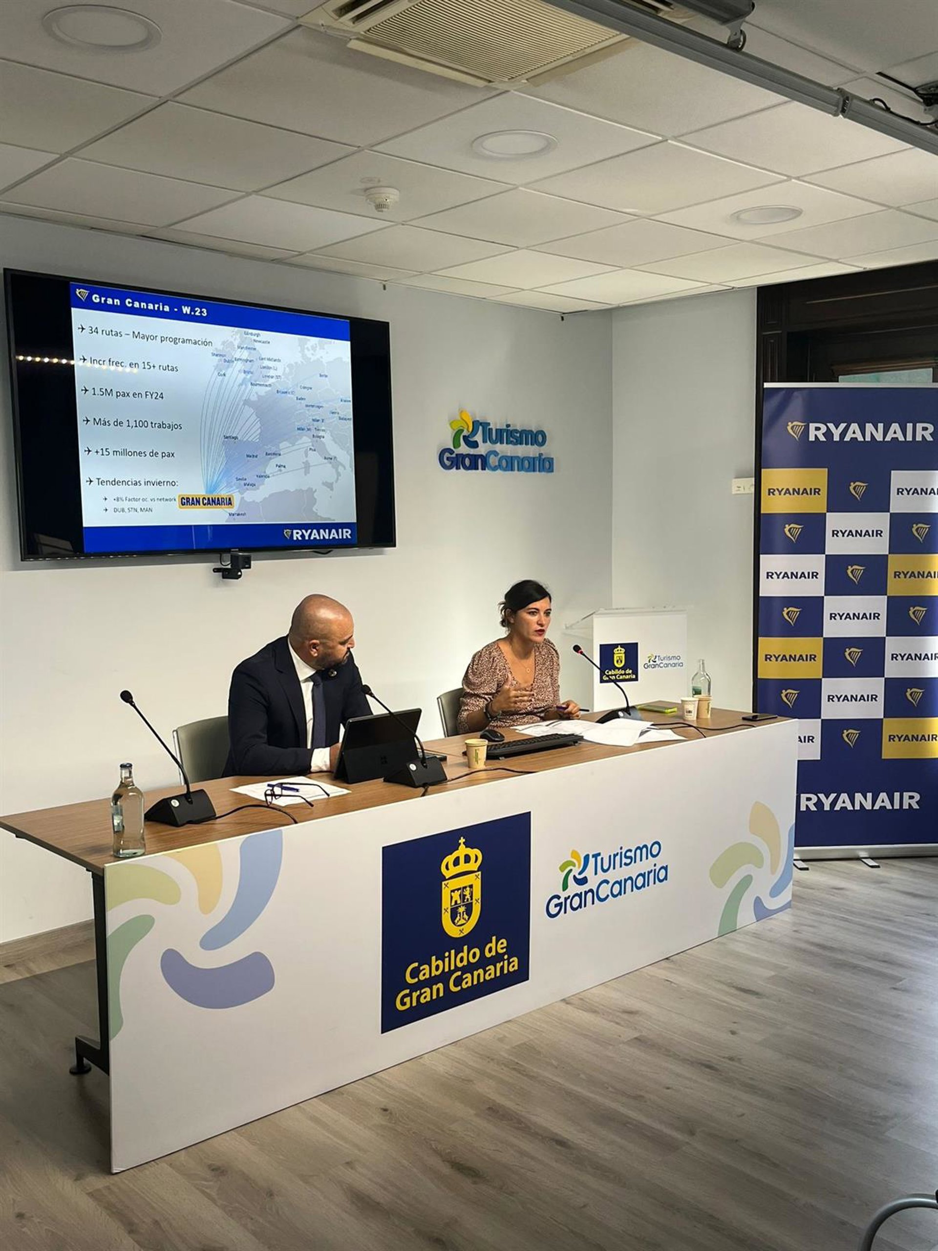 La country manager para España y Portugal, Elena Cabrera, y el consejero de Turismo del Cabildo de Gran Canaria, Carlos Álamo - CEDIDO POR RYANAIR