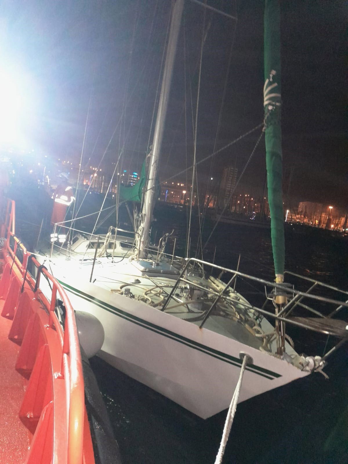 Hasta el lugar desplazaron a la salvamar Alpheratz, cuya tripulación desenrolló embarcación de línea de boya y remolcó el velero al puerto de Los Cristianos, donde quedó amarrado con seguridad.