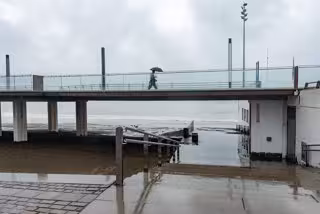 Una persona se refugia de la lluvia bajo paraguas un cerca de la playa - Europa Press