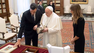 Archivo - El presidente del Gobierno, Pedro Sánchez, intercambia regalos con el Papa durante su visita de 2020. - PONTIFEX - Archivo