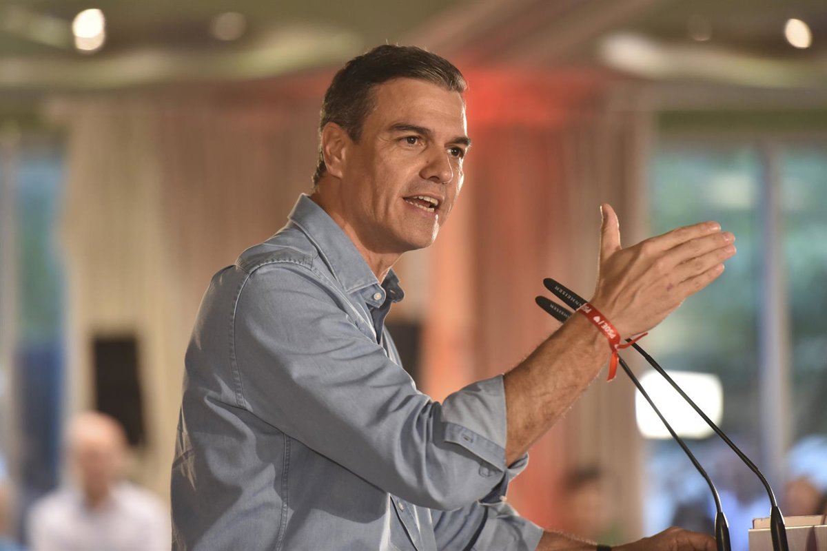 El presidente del Gobierno y secretario general del PSOE, Pedro Sánchez, participa en un acto de campaña del PSOE en el Hotel Abba, a 17 de julio de 2023, en Huesca, Aragón (España). - Verónica Lacasa - Europa Press
