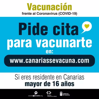La Consejería de Sanidad del Gobierno de Canarias, a través del Servicio Canario de la Salud (SCS), habilita desde hoy lunes un formulario web (www.canariassevacuna.com) en el que cualquier residente canario, independientemente de su edad y de la isla en la que resida, podrá solicitar cita previa para ser vacunado contra la COVID-19.