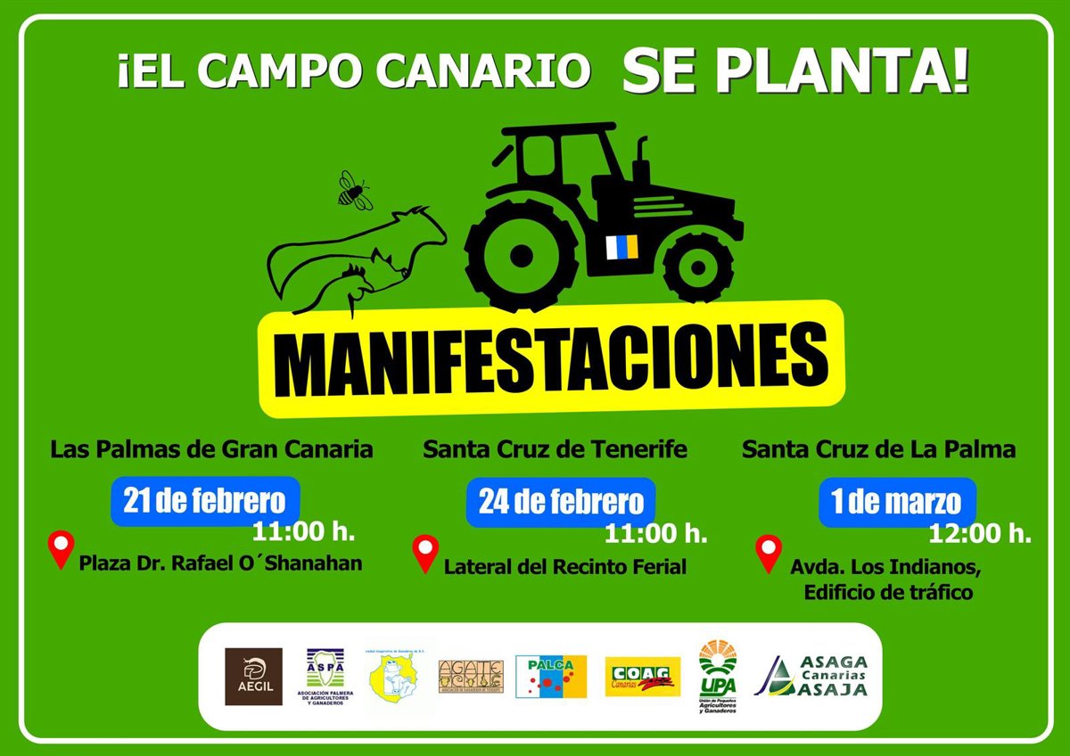 Cartel de las manifestaciones previstas por el sector primario en Canarias - ASAGA CANARIAS