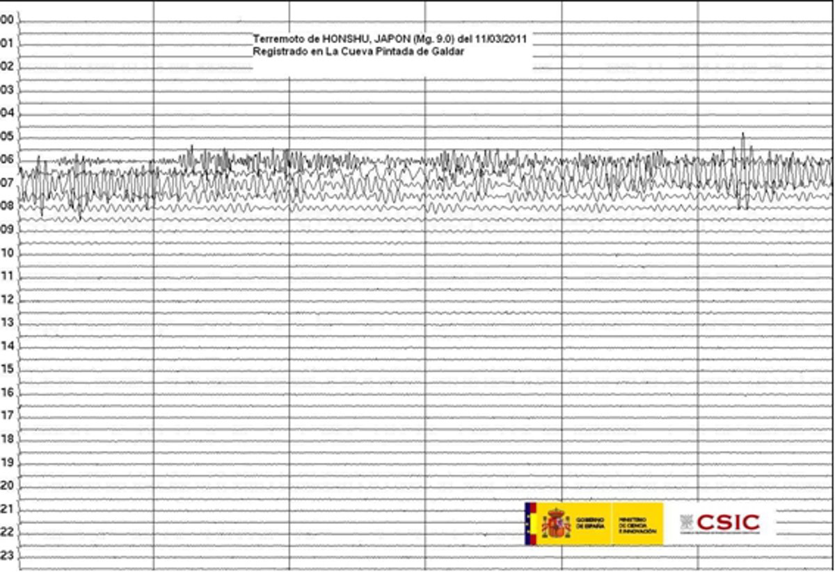 Los sismógrafos de gran precisión instalados en el Museo y Parque Arqueológico Cueva Pintada en Gáldar (Gran Canaria) reflejaron el día 11 de marzo el terremoto de magnitud 8,9 que sacudió Japón, cifrando en más de 3 horas los temblores sufridos.