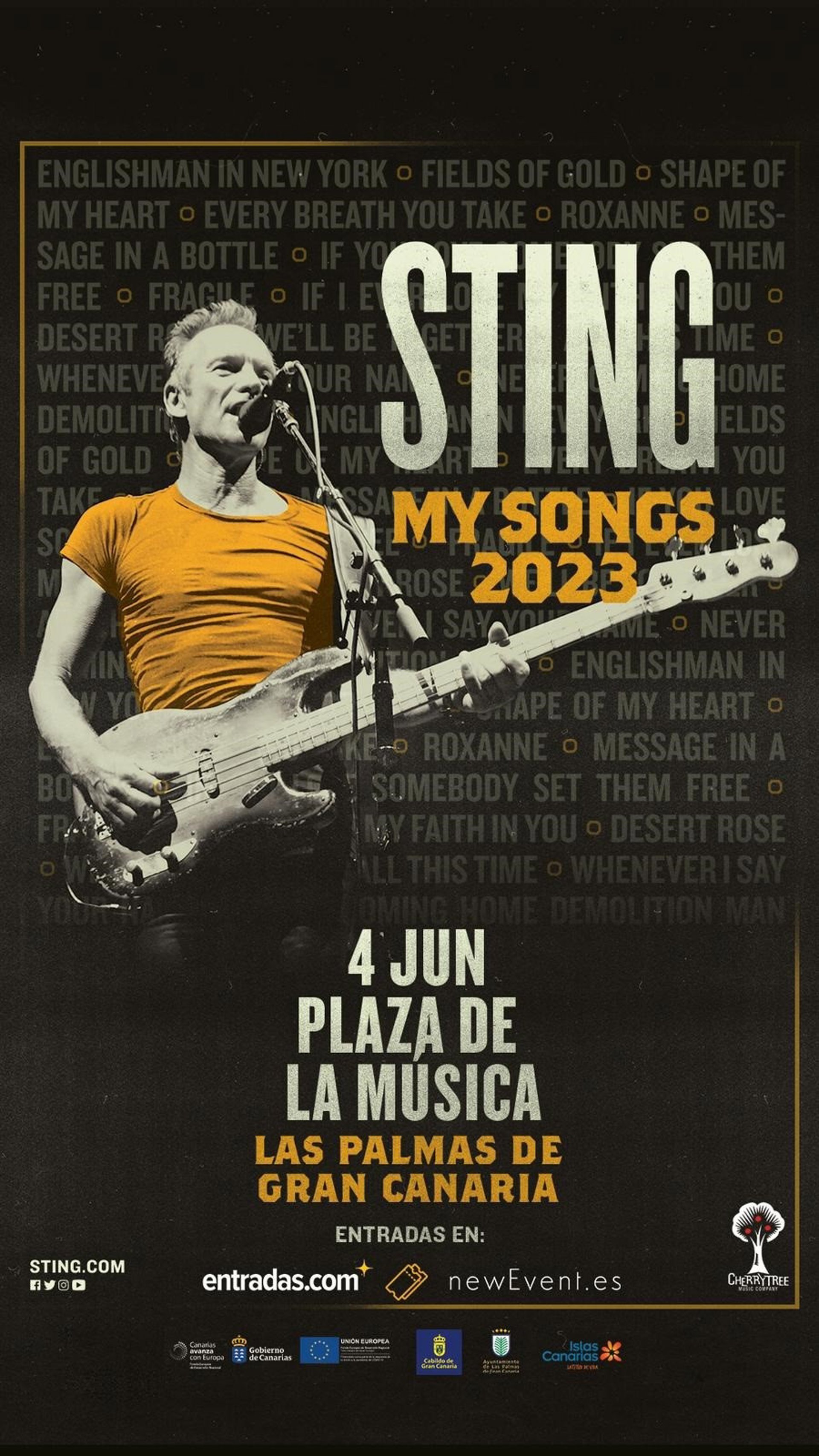 La compañía musical Cherrytree y Live Nation han confirmado que Sting ofrecerá un concierto especial de My Songs en el Campo de Fútbol de Adeje, en Tenerife, y en La Plaza de la Música de Las Palmas de Gran Canaria los días 3 y 4 de junio, respectivamente.