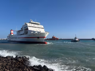 Un golpe de viento ha hecho que el ferry 'Ciudad de Ibiza', que no transportaba carga ni pasaje, impactara en la mañana de este miércoles durante la maniobra de atraque contra la Dársena África del Puerto de la Luz y de Las Palmas.