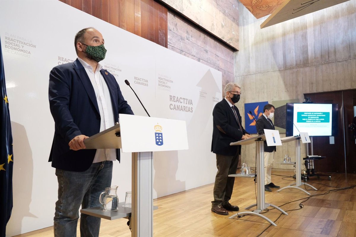 El consejero de Planificación Territorial, José Antonio Valbuena, el de Justicia, Julio Pérez, y el alcalde de Santa Cruz de Tenerife, José Manuel Bermúdez, en la presentación de la reordenación urbanística de Cabo Llanos - GOBIERNO DE CANARIAS