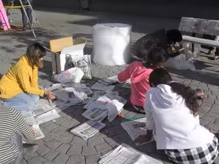 En esta ocasión, los jóvenes centraron sus propuestas sobre tres temas de actualidad, que ellos mismos escogieron en base a sus preocupaciones. Un primer proyecto se basaba en la indigencia y la pobreza; partiendo de estas ideas crearon --usando cartones y periódicos-- un banco desde que se pueden leer todo tipo de noticias referidas a los índices de pobreza, a la crisis económica y a sus consecuencias sociales. Otra de las obras elaboradas por los estudiantes ponía de relieve el impacto social y emocional que el cáncer tiene en la sociedad contemporánea. La tercera planteaba una reflexión sobre las consecuencias vitales y sociales de la delincuencia y la violencia juvenil.