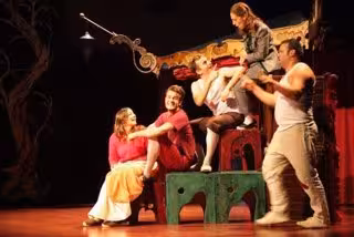 La Commedia dell arte o también llamada Commedia all'improviso es un género italiano de máscara, que nació en las plazas de los pueblos y es desde ahí de donde relatan las más hilarantes historias de amor y engaños. El Zanni (criado de la comedia) era una forma de denominar a todos los actores. La reunión de los Zanni evoca las compañías itinerantes de actores, de un tiempo pasado, pero con una temática del presente, pudiendo desenmascarar así la esencia de este género.